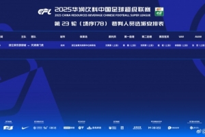 体育资讯8月20日讯 中超官方公布今晚第23轮比赛裁判安排,沈寅豪担任主裁判。