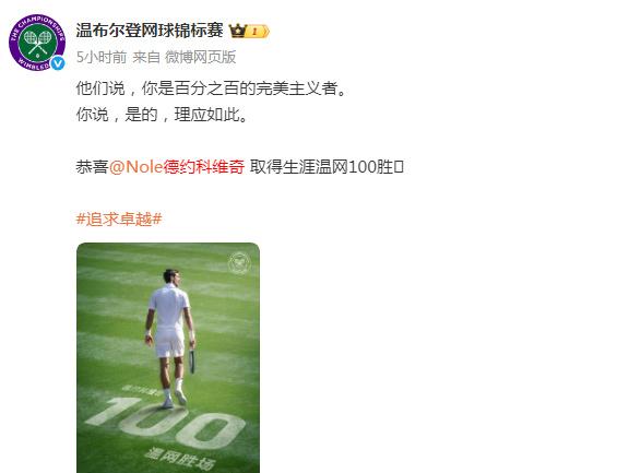 北京时间 7 月 6 日,全英俱乐部的草地球场见证了又一段网球传奇的诞生。38 岁的 “网坛 GOAT” 诺瓦克・德约科维奇在温布尔登网球锦标赛男单第三轮,以教科书般的表现直落三盘(6-3、6-0、6-4)横扫同胞拉斯洛・杰雷,不仅强势晋级 16 强,更用这场胜利为自己的温网荣耀簿增添浓墨重彩的一笔 —— 职业生涯第 100 场温网胜利,就此达成!