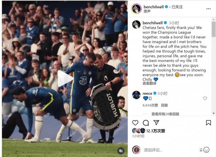 奇尔维尔社媒晒出告别视频,配文:“切尔西球迷,首先要谢谢你们!我们一起赢得了欧冠,缔结了超乎我想象的羁绊,我在这里结识了一生的兄弟。你们帮助我度过了艰难时期、伤病困扰和人生低谷,给予我人生中最美好的时光,这份情谊永难回报,期待向大家展示我最好的一面。回头见!”