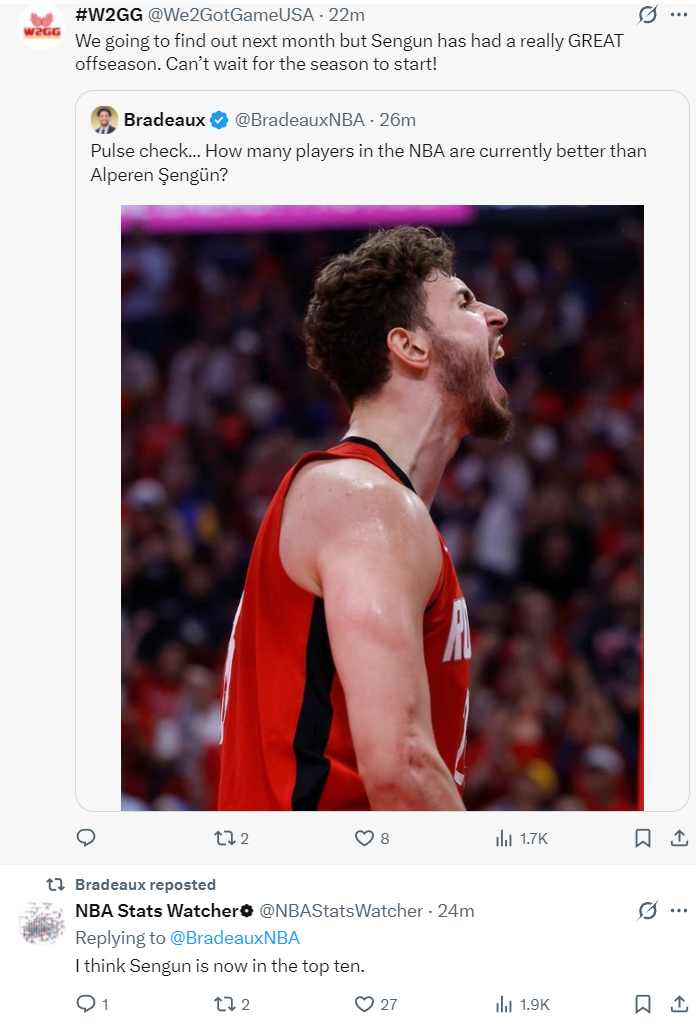 火记Bradeaux:想要询问一下,目前申京在NBA中能排多少?有多少NBA球员比他强呢?